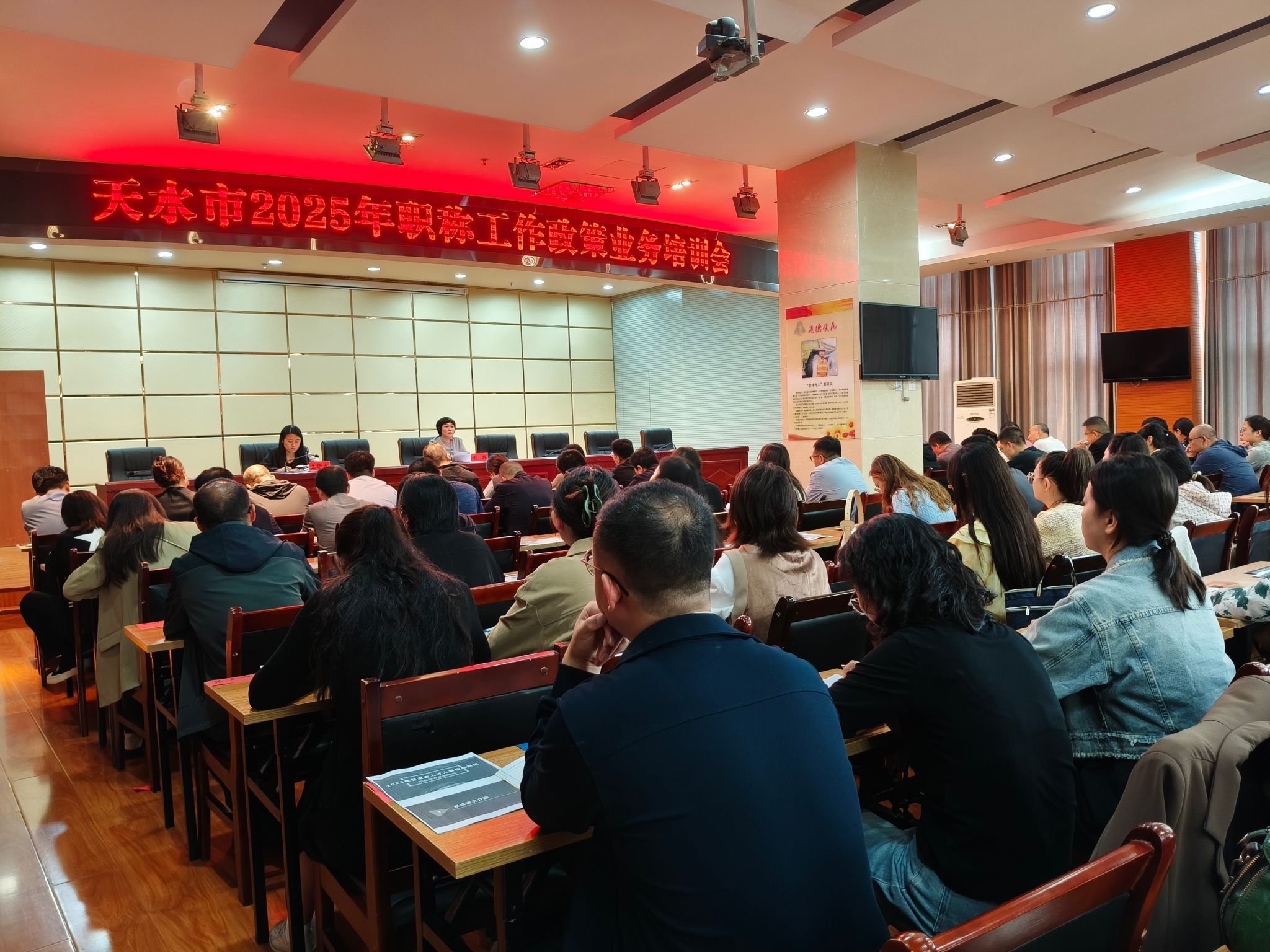 为确保2025年全市职称申报评审工作高质量开展,911 日,市人社局组织开展天水市2025年职称工作政策业务培训会,市人社局党组成员、副局长谢辉主持培训会,各县区人社局及市直有关部门、相关企事业单位负责职称工作业务人员共100多人参加培训。