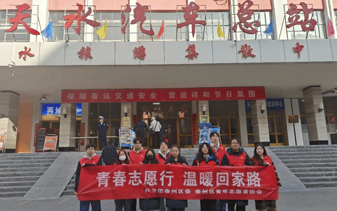 团委开展爱心志愿服务活动,推动志愿服务“力量下沉”,在农民工返乡返岗集中的各交通站场,发动各类爱心公益志愿服务团体,组织青年志愿者为农民工开展票务协助、引导咨询、行程指引、行李搬运、车辆停放、充电加油等暖心关爱志愿服务活动,让农民工切实感受到全社会的温暖关爱。春运期间,全市团组织系统组织236名青年志愿者在天水长途汽车站、天水南站、火车站以及县区火车站、汽车站、高速路口等重要交通枢纽点,开展为期40余天的春运志愿服务保障工作,累计服务返乡返岗农民工群体5.2万人次。开展暖心关爱送温暖活动,共慰问“快递小哥”、骑手外卖员等新业态劳动者400余人,发放书包、棉衣、水杯价值3万余元。