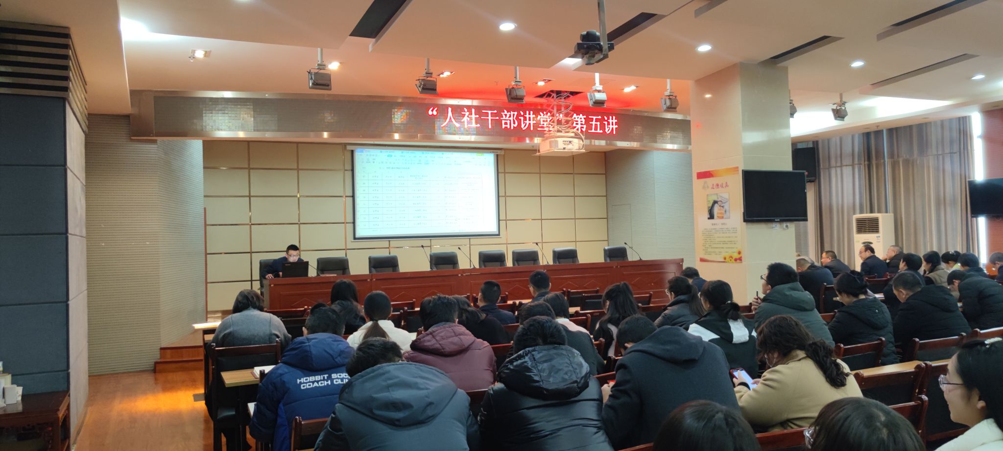1月12日,天水市人社局第五期“人社大讲堂”开讲。人力资源规划科科长马永驰围绕人力资源服务各项规定条例做专题讲解,局机关、局属各单位全体干部参加讲座。