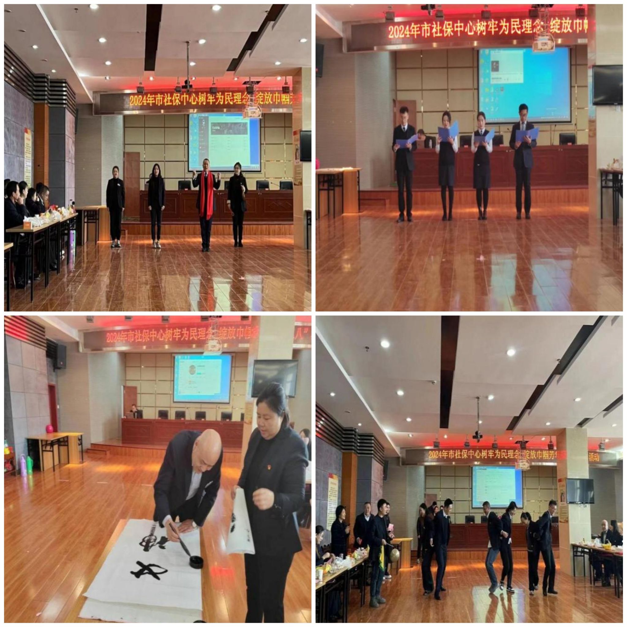 本次活动共包括政治理论学习、表彰先进、朗诵、歌舞、书法表演等内容。文艺节目均由中心各科室精心准备,全体干部职工个个精神昂扬,以饱满的热情积极参与,既进行了速度的角逐,又进行了智慧的较量,既展示了个人的水平,又体现了团队的协作,充分展现了新时代社保干部的风采。