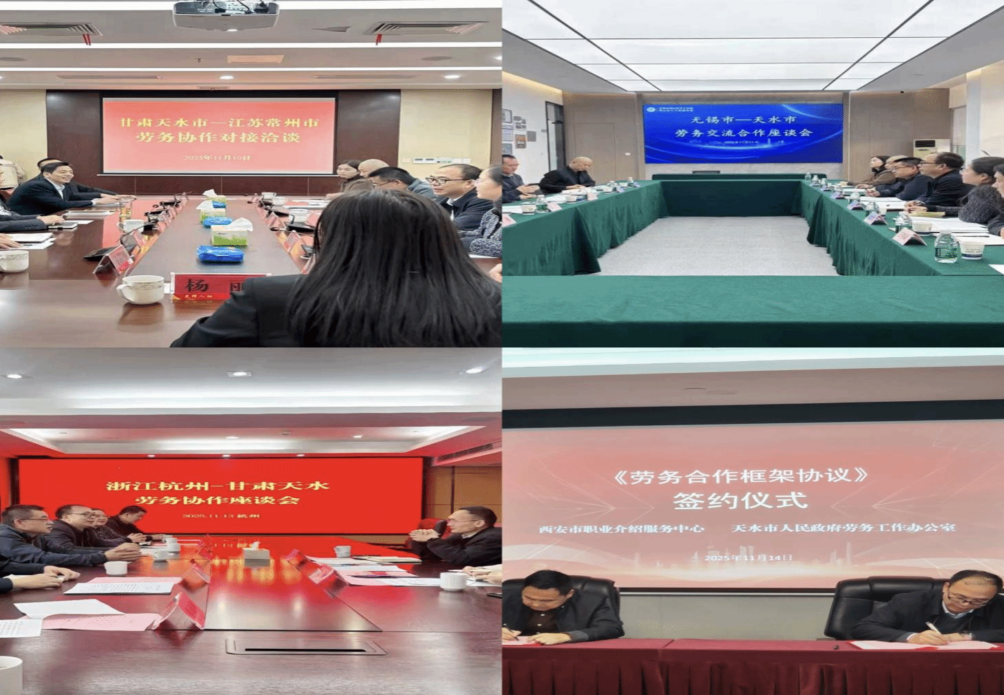 为深入贯彻落实党的二十大、二十届历次全会精神和习近平总书记视察甘肃重要讲话重要指示精神,进一步落实乡村振兴战略部署,提前谋划2026年劳务输转工作,扎实做好城乡富余劳动力特别是脱贫人口转移就业工作。近期,由市人社局分管负责同志带队,市劳务办、相关县区人社部门、相关人力资源机构负责人参加的劳务协作对接工作组,先后赴江苏常州、无锡,浙江杭州,陕西西安等四地我市传统务工基地开展劳务协作对接活动,并走访慰问天水籍务工人员,以精准对接强就业服务、以真情关怀暖人心,为我市务工人员和当地企业用工搭建坚实桥梁。