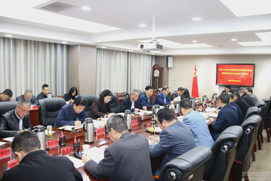 3月26日,市市场监管局党组书记、局长王宏玮主持召开党组理论学习中心组党史学习教育专题学习会议。市局领导班子成员、调研员,各直属单位及各科室负责人参加会议。