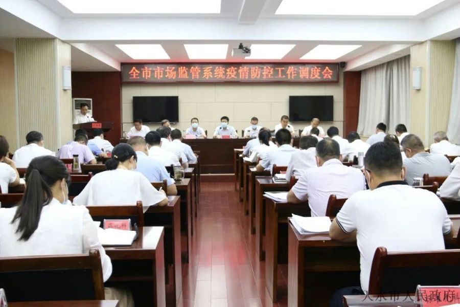 8月20日,天水市市场监管局召开全市市场监管系统新冠疫情防控工作调度会,党组书记、局长王宏玮出席会议并讲话,市局领导班子成员,各县区市场监管局、各直属单位及市局相关科室、开发区分局负责人参加会议。
