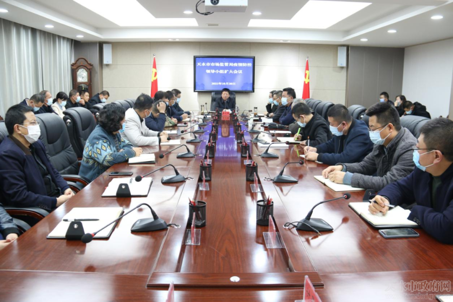 10月20日,天水市市场监管局召开新冠疫情防控领导小组(扩大)会议,全面贯彻落实省、市疫情防控工作部署要求,对全市市场监管系统疫情常态化防控工作进行安排部署。党组书记、局长王宏玮在会上讲话,市局在家领导班子成员,各直属单位及机关各科室负责人参加会议。党组成员王俊峰主持会议。