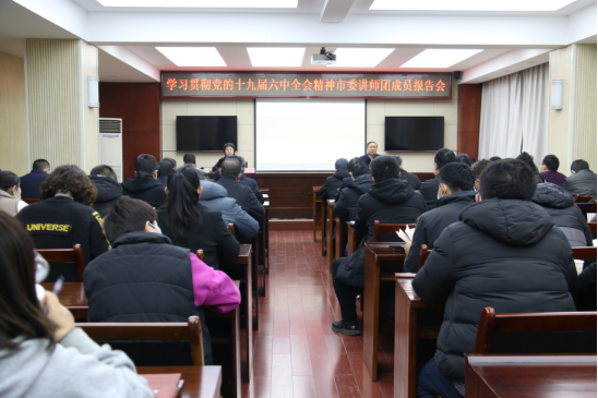 12月16日,天水市市场监管局举办学习贯彻党的十九届六中全会精神市委讲师团成员报告会。会议邀请市委党校哲学与科社教研室副主任陈玲昌作专题宣讲报告。局党组成员、副局长贾文斌主持会议,局领导班子成员、各直属单位负责人及机关全体党员干部参加会议。