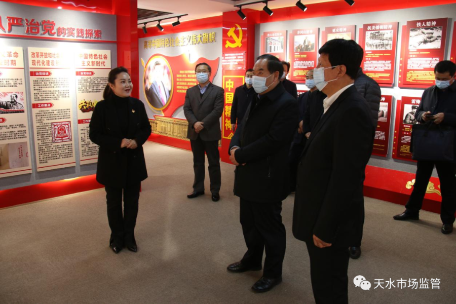 1月14日,甘肃省市场监管局党组书记、局长王忠习对天水市场监管工作进行了调研指导。天水市副市长汪小娟及市市场监管局党组书记、局长王宏玮,党组成员、副局长安和平一同调研。