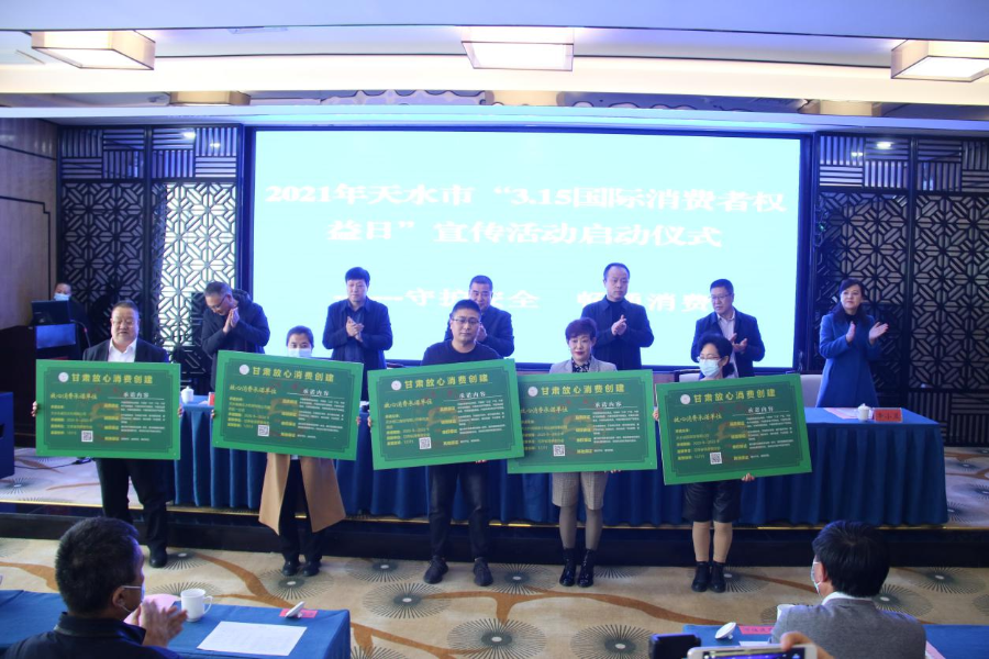 一是以“线下启动线上宣传”为手段,凝聚力量做好“面”上消费维权宣传。近年来,受新冠肺炎疫情防控影响,广场大型消费维权宣传活动受限,天水市市场监督管理局、天水市消费者协会主动作为,以“3·15消费者权益保护日”宣传活动为抓手,联合相关部门开展线上法律法规宣传、消费知识普及、消费技巧传授、消费陷阱讲解、商品识假辨假等活动,全面提高消费者维权意识。通过“两微一端”、天水日报、天水周刊等媒体专版解读“凝聚你我力量”“守护安全、畅通消费”“共促消费公平”等消费维权年主题,刊登天水市消费维权十大典型案例、12315投诉举报年度分析报告及商品质量年度分析报告各3期,天水电视台制作维权报道16期,录制播放市市场监管3·15特别节目动态播报21期。联合三大运营商组织开展“天水市3·15消费维权知识有奖竞答”活动2次,网络在线答题人员累计超过3万人次。在商场超市、专业市场、重要街区、特色行业、重点乡村、高速公路服务区等消费密集场所,宣传引导并创建“放心消费在陇原”示范单位252户,并为29户市级示范单位进行了授牌,创建“放心消费承诺”单位129户,“线下购物无理由退货”承诺单位87户。累计发放宣传材料5万余份,印发消费维权小册子1万余本,制作消费维权展板20余幅,印制宣传纸杯、纸巾盒3万余个,LED显示屏滚动播放210屏次,发布各类消费警示150余条,在12处人流量较大集贸市场配置“公平秤”13台。
