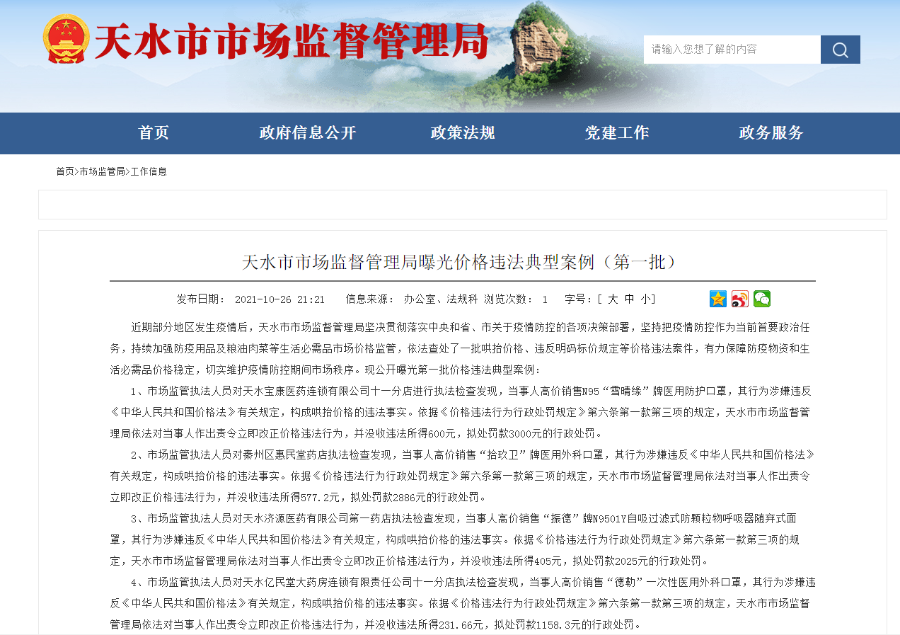 三是以“公开曝光典型案例”为震慑,严厉打击侵害消费者合法权益的违法行为。近年来,天水市市场监督管理局、天水市消费者协会坚持把疫情防控作为当前首要政治任务,依法查处了一批哄抬价格、违反明码标价规定等价格违法案件,先后通过各类媒体公开曝光3批24起价格违法典型案例,有力保障了防疫物资和生活必需品价格稳定,切实维护了良好的市场秩序。功夫不负有心人,天水市在中消协开展的全国100个城市测评中,消费者满意度持续提升,全市消费环境不断改善。