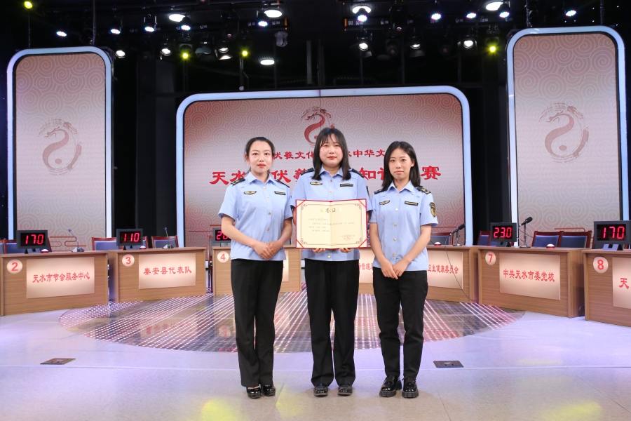 6月10日上午,由天水市委宣传部主办,天水广播电视台、天水市伏羲文化研究中心承办的天水市伏羲文化知识竞赛总决赛在天水市广播电视台成功举办。天水市市场监督管理局代表队在市局党组成员、副局长安和平带队下,凭借稳定的发挥和出色的表现,在此次竞赛中荣获二等奖的好成绩。