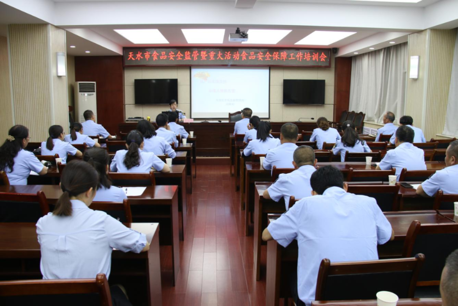 同时,市局邀请省级专家对食品安全暨重大活动食品安全保障工作进行专题培训,系统讲授了食品安全监管工作要点和工作检查注意事项,培训会议既有理论高度,又富有实际工作监管“温度”,进一步提升了工作人员业务能力和重大活动食品安全保障水平,秦州、麦积两区城区监管所负责人和保障酒店驻点工作人员共计40人参加培训。