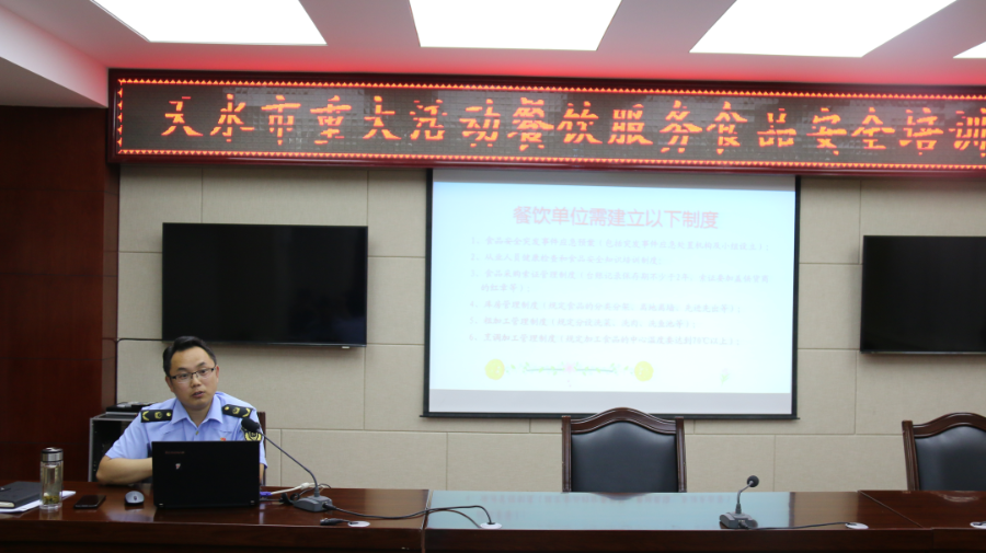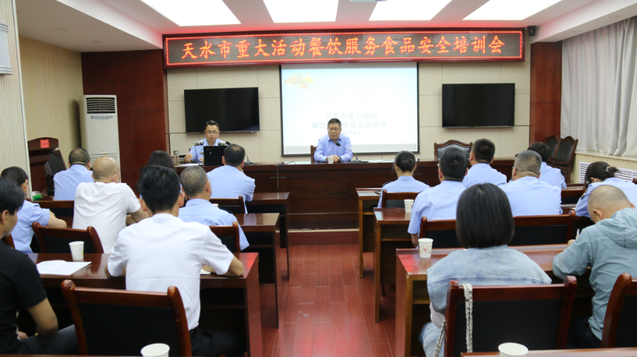 为切实做好2023(癸卯)年公祭中华人文始祖伏羲大典暨第32届天水伏羲文化旅游节期间食品安全保障工作,提高接待单位餐饮服务人员食品安全意识,提升餐饮服务经营主体食品安全管理水平,6月16日,天水市市场监管局对相关餐饮服务单位管理人员集中进行重大活动餐饮服务食品安全知识培训。市局党组成员、市食药安委办副主任王俊峰在会上讲话。全市重大活动餐饮服务接待单位食品安全管理员、厨师及驻点保障监管人员共50余人参加会议。