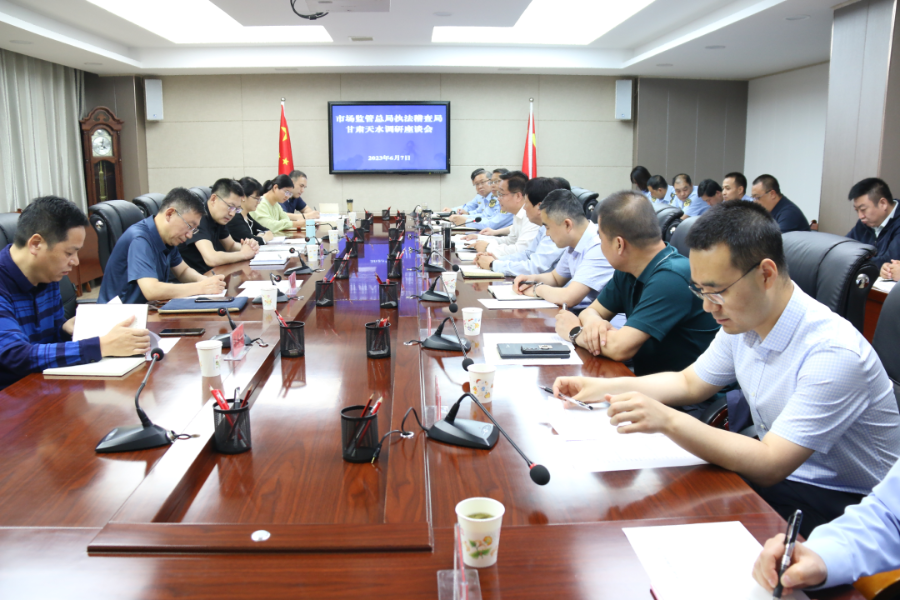 座谈会上,调研组听取了天水市局关于行政执法情况的汇报,与有关县区局和基层所负责人就行政执法行风建设及行政执法工作中面临的困难和问题进行了座谈交流。会后调研组深入天水市市场监管局大数据中心、天水市市场监管综合行政执法队、麦积区甘泉镇市场监管所进行了实地调研。