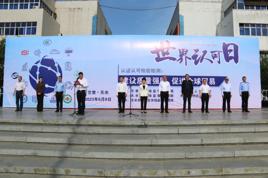 第十六个“世界认可日”甘肃省主题宣传活动启动仪式在天水龙城广场举行。省市场监管局党组成员、副局长何文涛出席讲话并宣布宣传活动启动,天水市政府副市长汪小娟致辞,省市场监管局认证认可检验检测处处长詹久斌主持仪式。