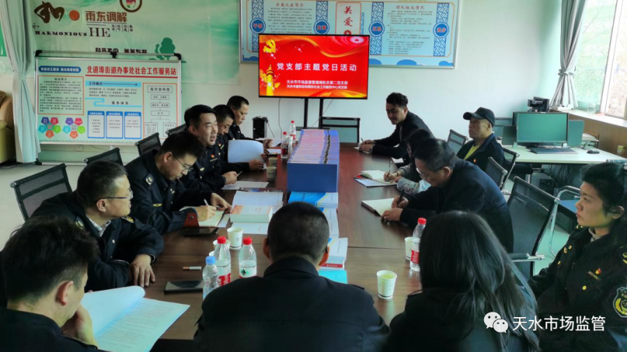 为深入学习贯彻党的二十大精神,进一步增强党建工作活力,全面提升党支部标准化示范创建工作水平,近日,天水市市场监督管理局机关第二党支部结合“三抓三促”行动,与和雨东矛盾化解社会工作服务中心党支部开展联学联建交流学习活动,面对面、实打实帮助企业解决难题,促进党建与业务工作融合发展。