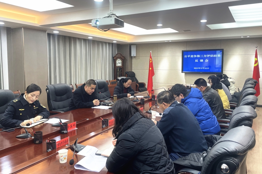2月22日,天水市召开公平竞争审查第三方评估结果反馈会。市市场监管局党组成员聂惠仁主持会议并讲话,市国资委、商务、自然资源、文旅、住建、农业农村等六家被评估单位分管领导和相关处室负责人以及第三方评估机构专家参加会议。