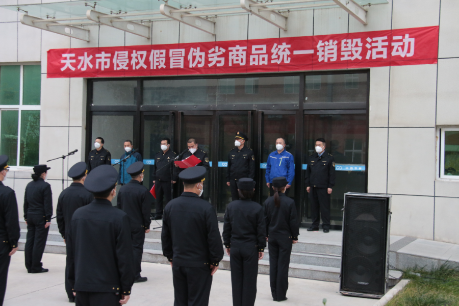 11月10日,天水市“双打”办组织开展了全市侵犯假冒伪劣商品统一销毁行动,也是全国“双打”办组织同步销毁行动甘肃省分会场之一。市“双打”办主任、市市场监管局党组成员聂惠仁出席启动仪式,市打击侵权假冒领导小组各成员单位负责人、市市场监管综合行政执法队执法人员共30余人参加销毁行动。