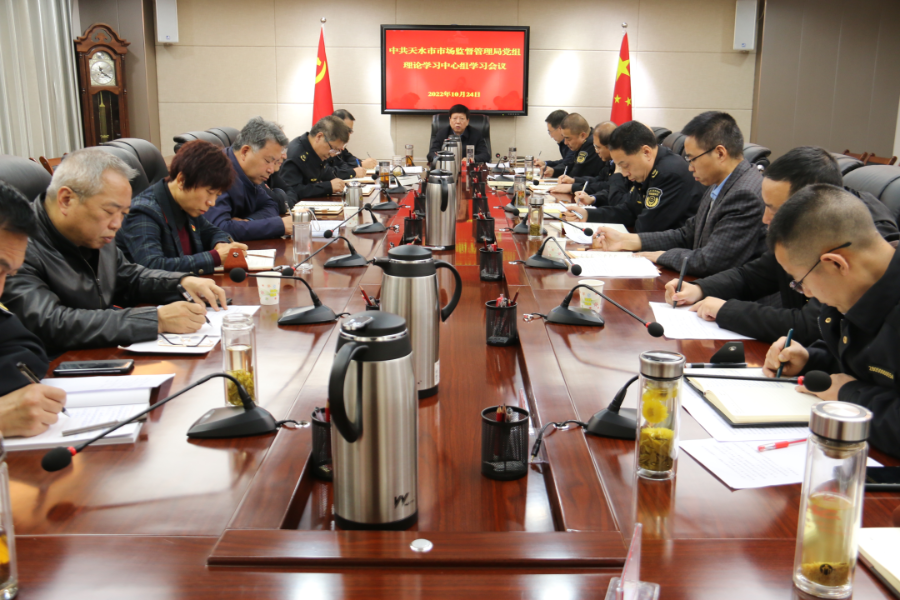 10月24日,市市场监管局党组书记、局长王宏玮主持召开党组理论学习中心组(扩大)会议。局领导班子成员、调研员,各直属单位及相关科室负责人参加会议。