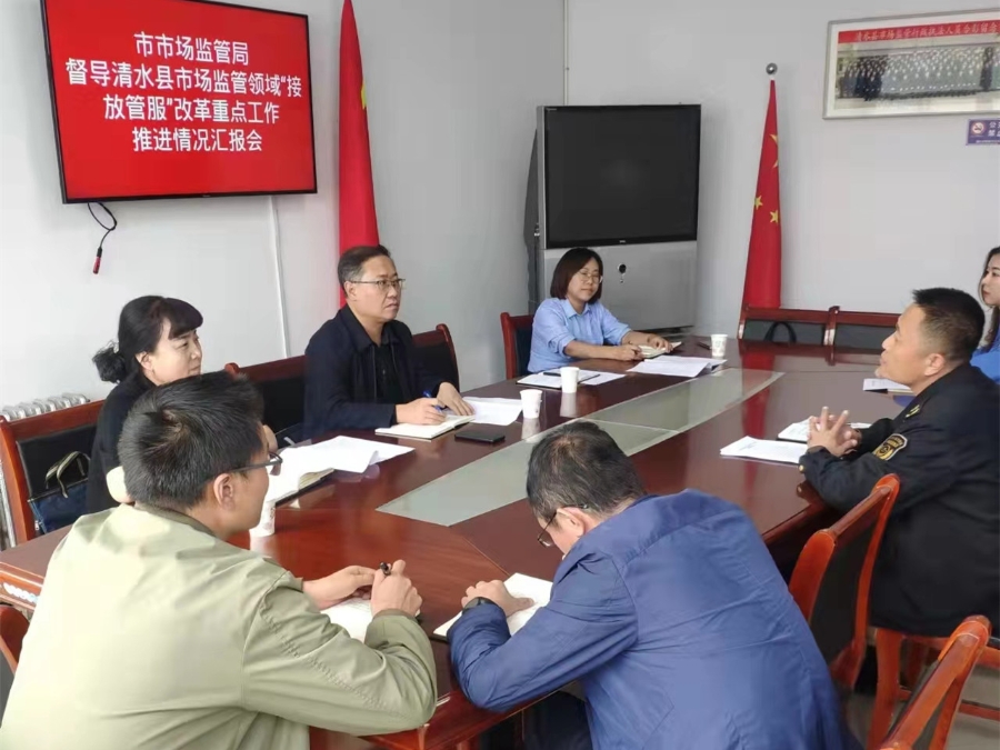 为认真贯彻落实全市市场监管工作会议精神,持续推进“接放管服”改革优化营商环境和“强作风、优服务、抓落实、促发展”作风建设年活动,近日,市局党组成员、副局长贾文斌带队,对各县区局深化“接放管服”改革重点工作推进落实情况进行了调研督导。