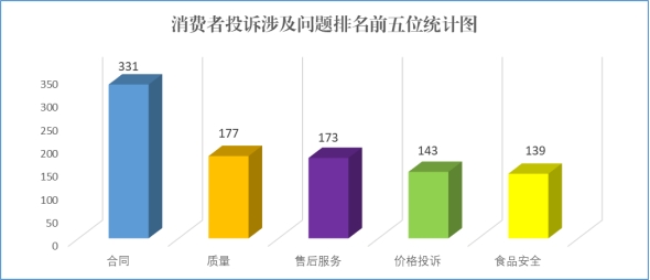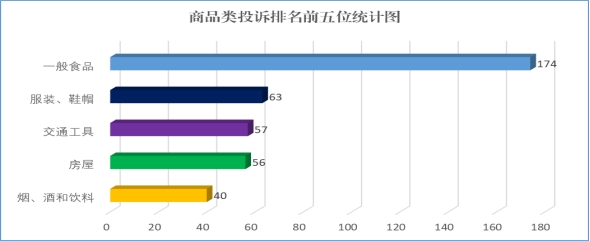 商品类投诉769件,占投诉总量的53.70%。排名前五位的依次是: