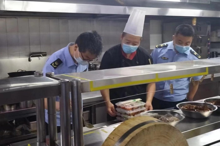 三是把好关键环节关。坚持从业人员持健康证上岗,严格落实每日健康检查制度,落实畜禽肉类产品及其他食品和原料进货查验制度,落实生熟食品分开存放、荤素食品分开洗切制度,食品加工要烧熟煮透,食品加工用具和餐饮具使用前后全面消毒,提倡采用一次性餐具。严格落实食品留样制度,实行每餐每品种按要求留样。同时,监管人员有效使用“陇上食安”监管平台进行远程视频监管,真正做到不见面监管和不见面巡查。
