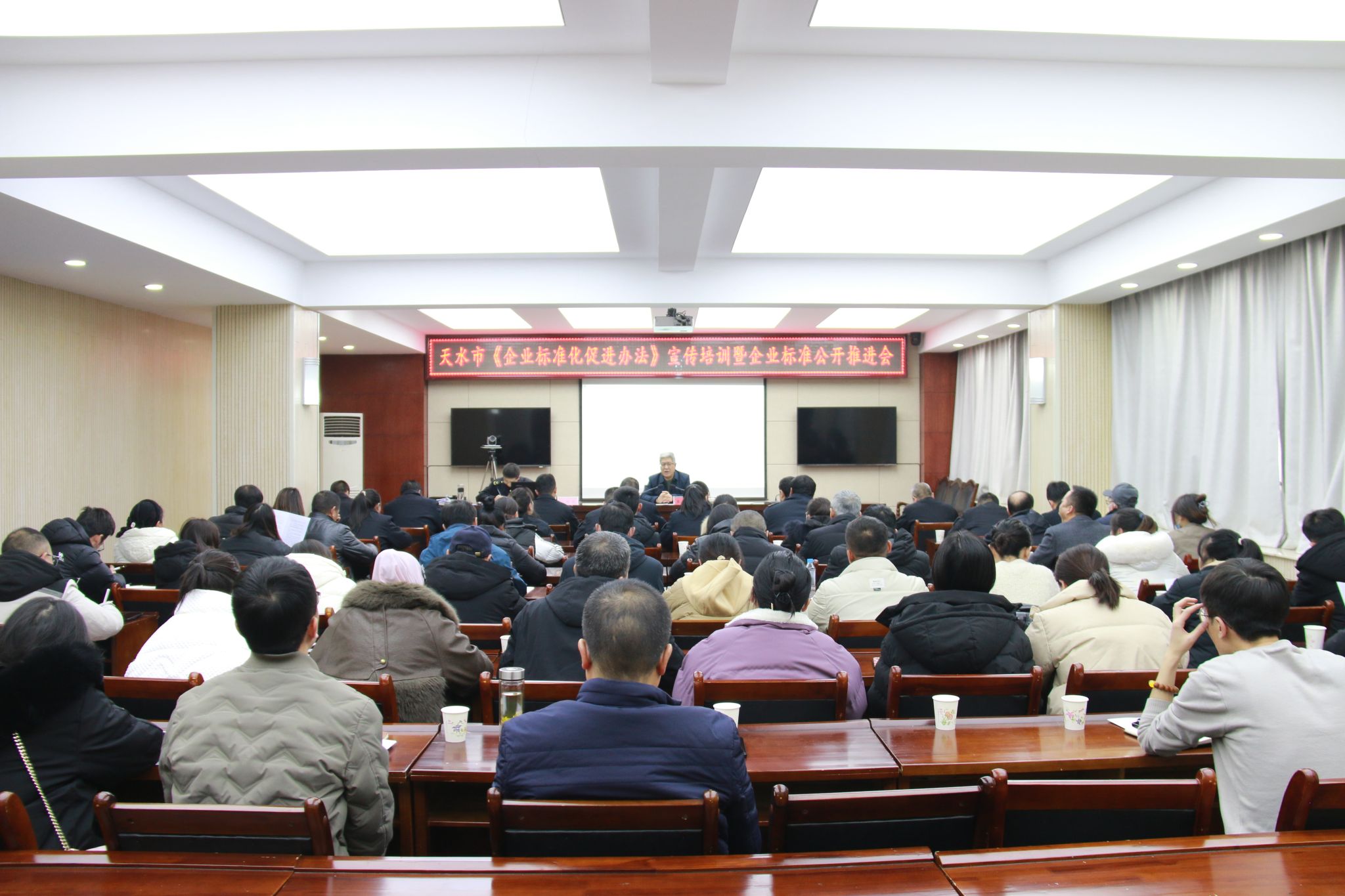 为进一步激发企业标准化创新活力,引领企业标准化水平提升,12月27日,天水市市场监管局召开《企业标准化促进办法》宣传培训暨企业标准公开工作推进会。局党组成员王俊峰出席会议并讲话,对企业靠实主体责任、强化标准实施及做好自我声明公开等工作提出具体要求。各县区市场监管局分管领导、业务股室负责人及企业代表共60余人参加会议。
