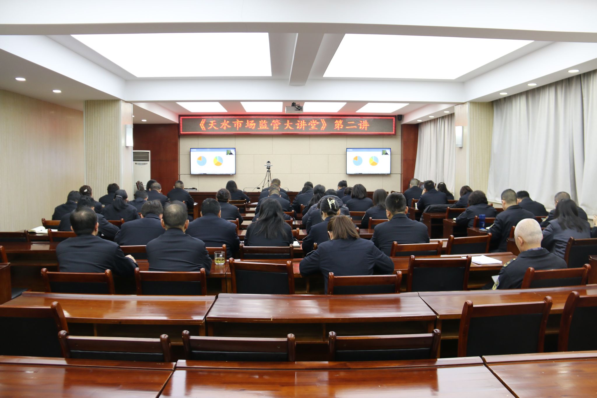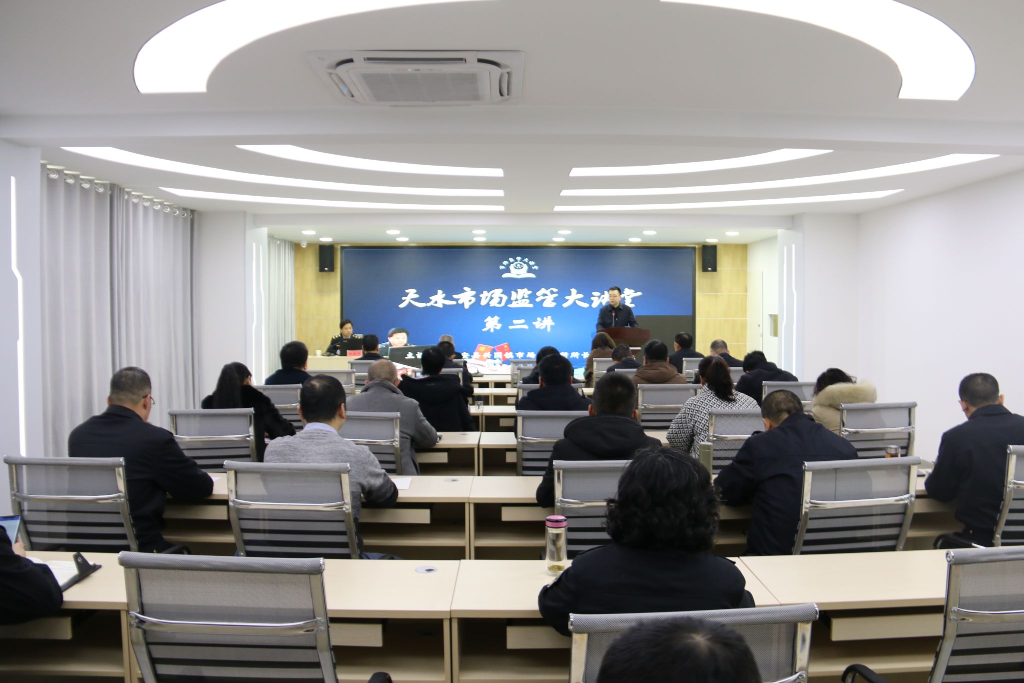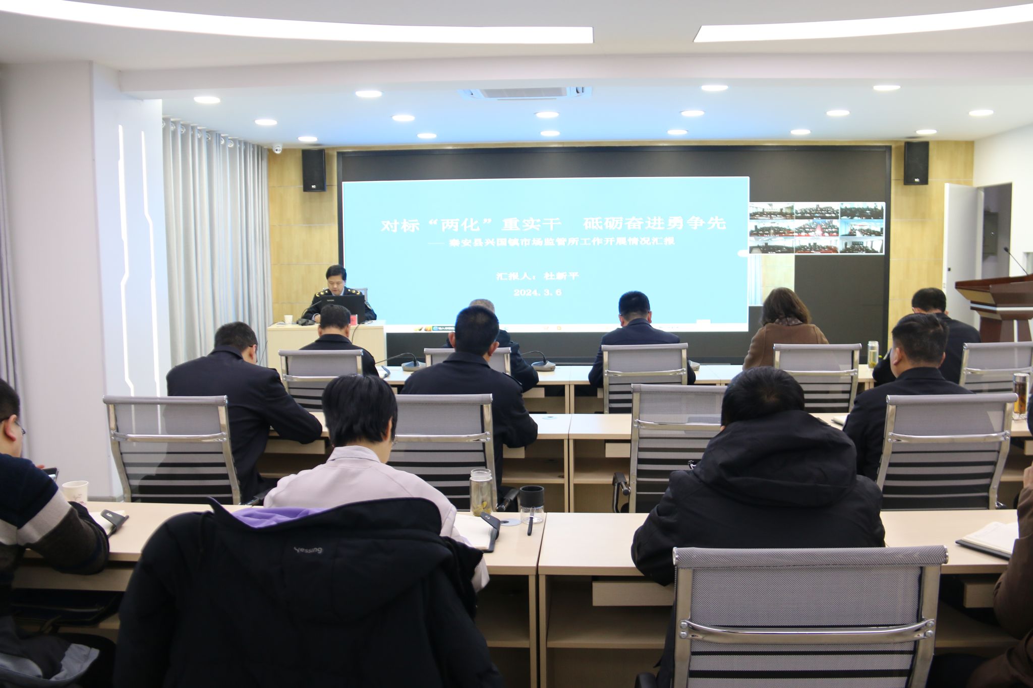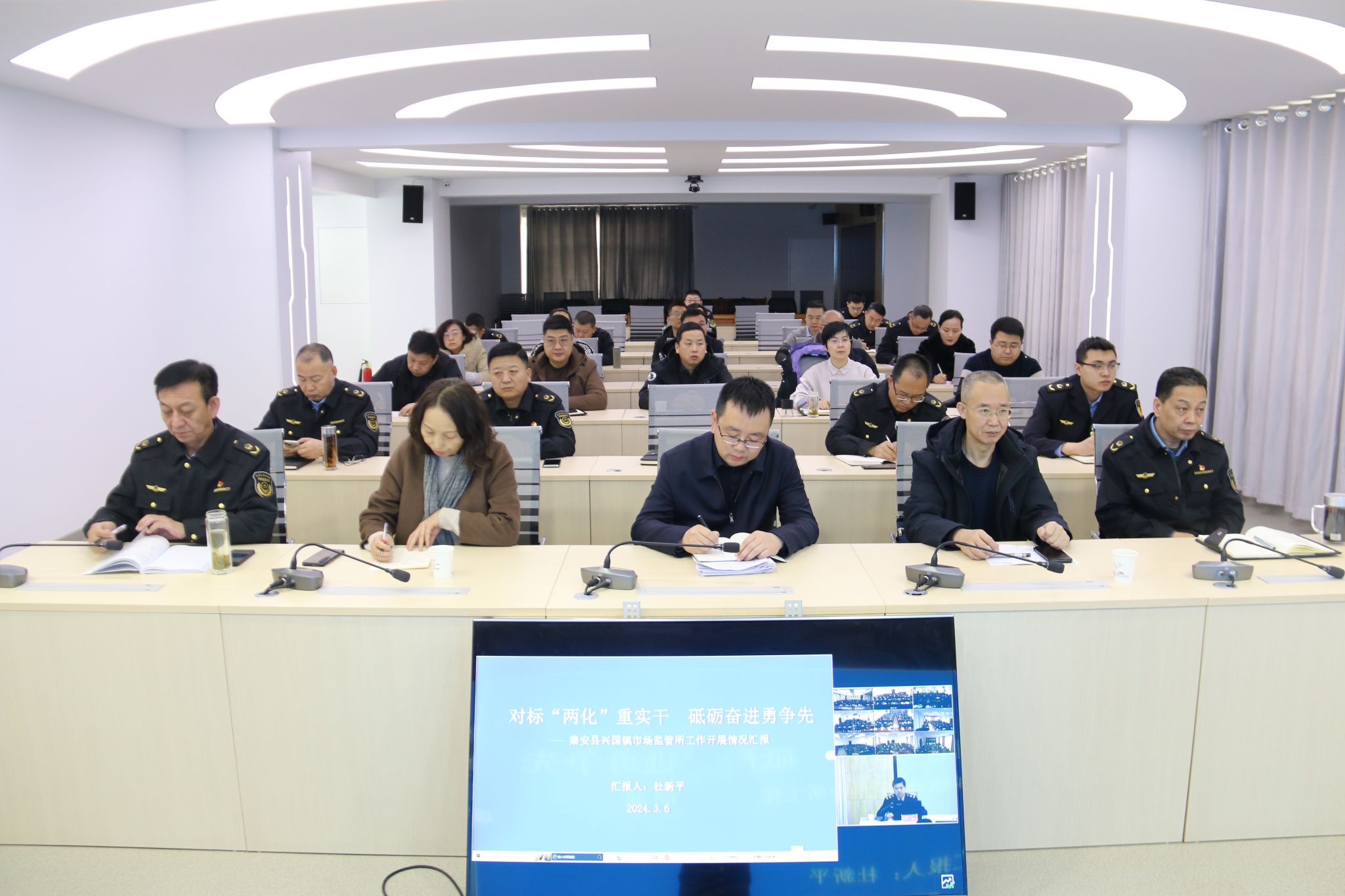 3月6日上午,2024年第二期“市场监管大讲堂”在市市场监管局开讲。讲座由市局党组成员、副局长刘小午主持,秦安县兴国镇市场监管所所长杜新平做了题为《对标"两化”重实干 砥砺奋进勇争先》的专题讲座,全市市场监管系统共560余名干部职工分别在市局主会场和县区局分会场聆听了讲座。