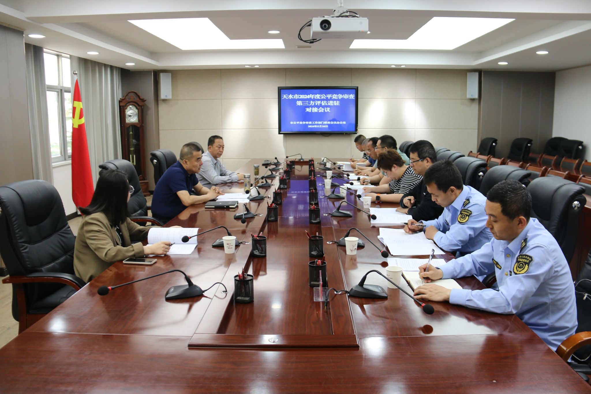 5月16日,天水市召开2024年度公平竞争审查第三方评估进驻对接会议。市市场监管局党组成员、市非公有制经济组织党委书记聂惠仁主持会议并讲话,相关县区公平竞争审查工作部门联席会议办公室、市级联席会议有关成员单位、县市场监管局负责人参加会议。