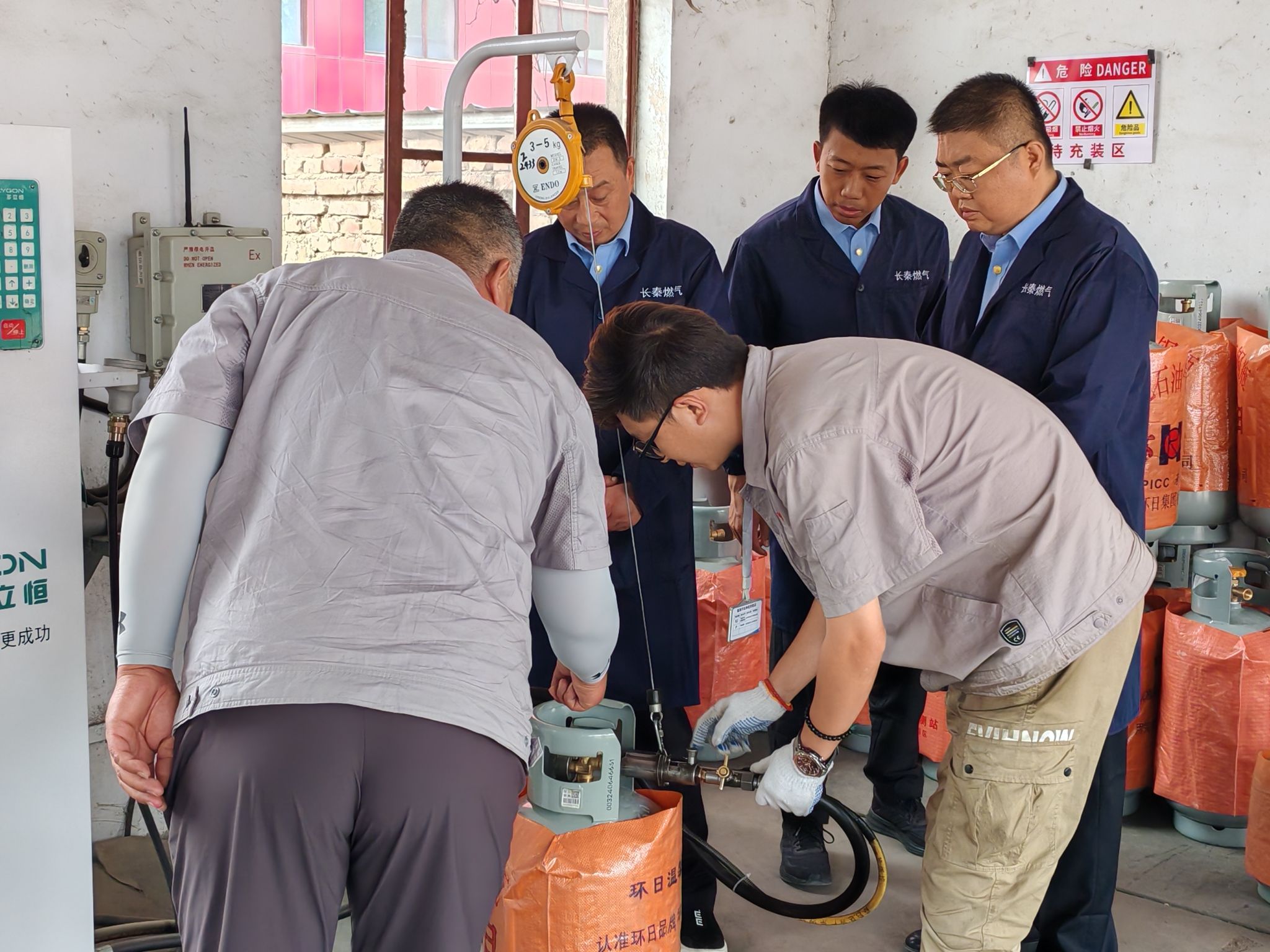 健全制度抓监管。建立健全液化气瓶充装“四号+日期”(每支气瓶充装时登记气瓶编码、使用人的身份证号码、手机号码、居住或经营具体地址及门牌号码加充装日期)登记管理制度,督促指导27家气瓶充装单位做到“八有、一落实、一可控”(有信息追溯码、有使用登记证、有安全管理员证、有充装作业人员证、有充装前后检查记录、有检验标记环、有安全总监、有安全员,落实安全管理制度,安全阀和压力容器在校检有效期内且运行状态安全可控),严厉打击非法充装等违法违规行为。