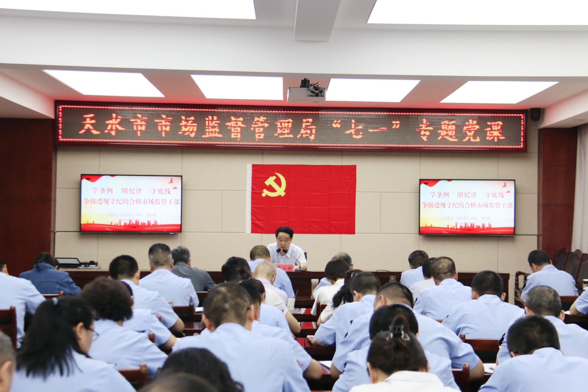 为庆祝中国共产党成立103周年,深入学习贯彻《中国共产党纪律处分条例》,进一步推动党纪学习教育走深走实、见行见效,持续引导党员干部强化纪律意识、加强自我约束,不断增强政治定力、纪律定力、道德定力、抵腐定力,市市场监管局于“七一”前夕组织开展了党纪学习教育专题党课。市局党组书记、局长董小明同志以“重温党纪历史,知纪明纪守纪,努力做遵规守纪的优秀市场监管党员干部”为主题进行专题授课。