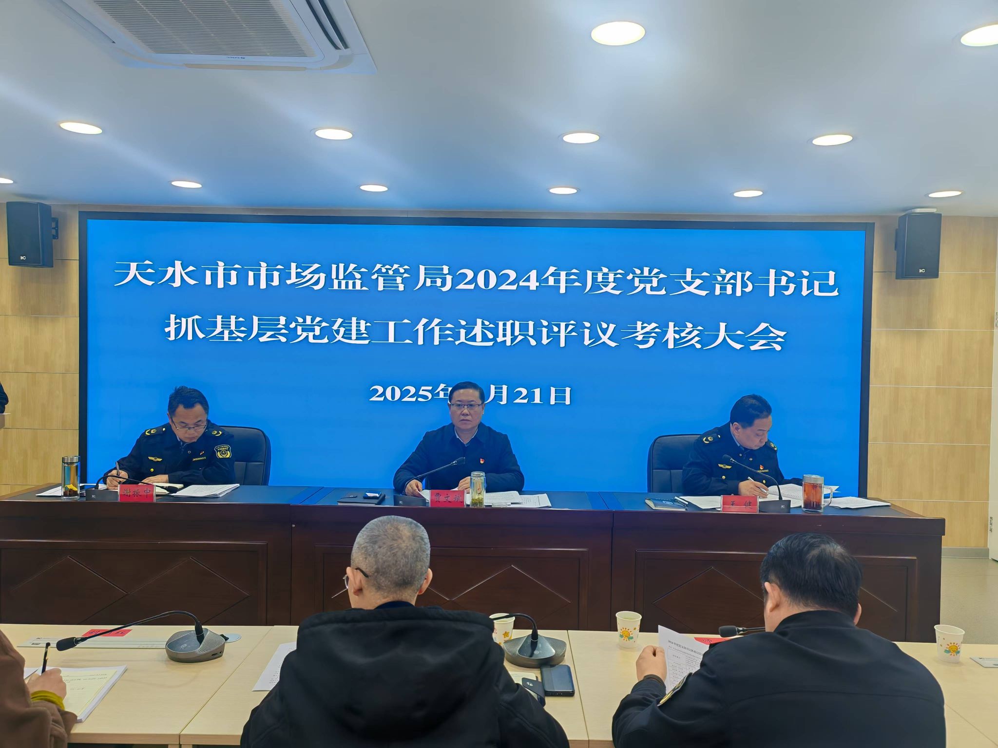2月21日,天水市市场监督管理局召开2024年度党支部书记抓基层党建工作述职评议考核大会,总结回顾2024年机关党建工作情况,安排部署2025年工作任务,提升机关党建工作水平。市市场监管局党组成员、副局长、直属机关党委书记贾文斌出席会议并讲话。