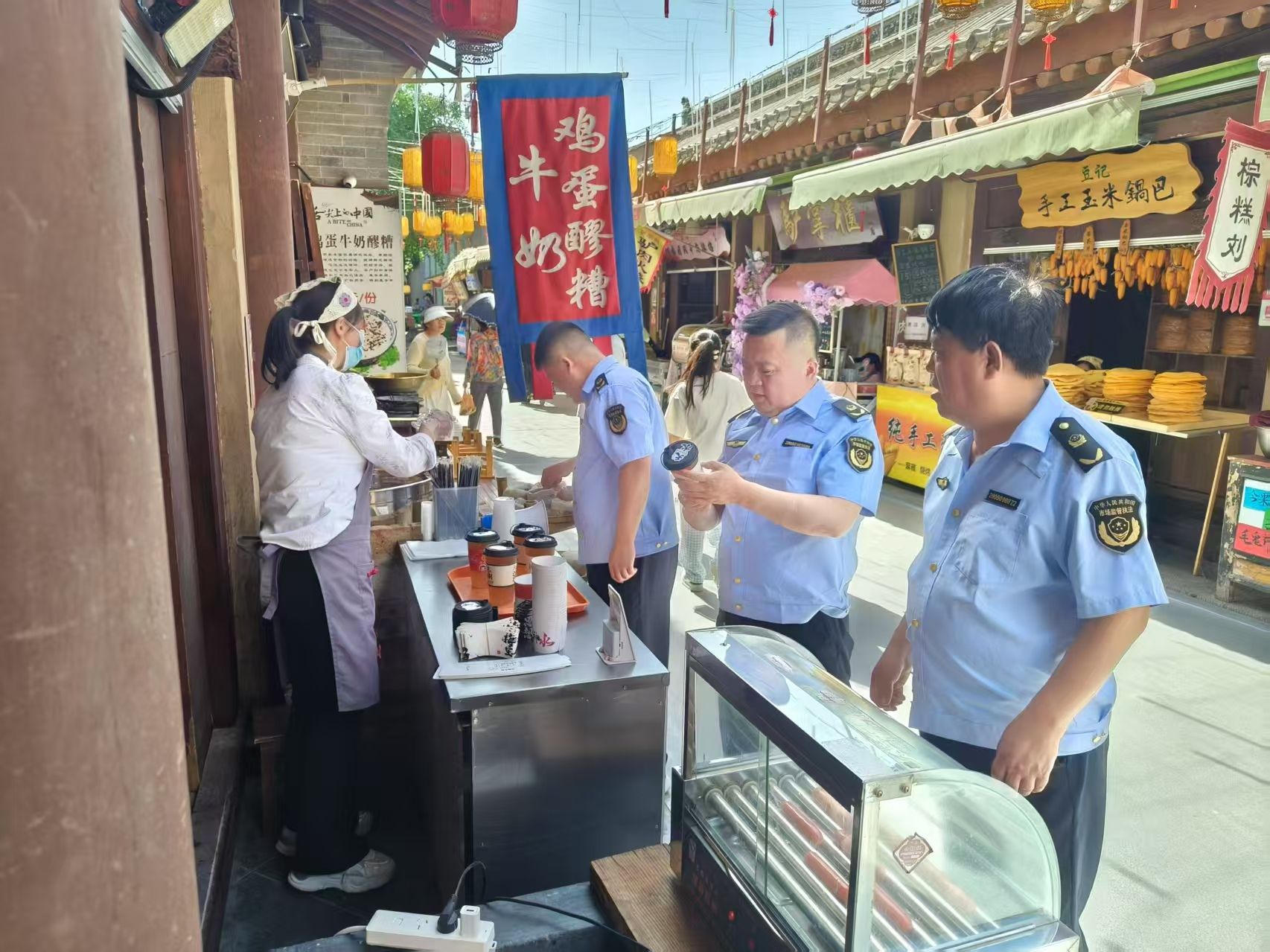 天水市秦州区市场监管局持续加强对伏羲庙、西关古城及周边等重点旅游景区景点的食品、特种设备安全监管和民生计量管理,重点检查酸奶、自制冷饮、现做小吃、熟食制品等热销食品和在用气瓶、计量器具,督促经营者严格落实明码标价、“一穿三戴三有”等制度,规范使用检定合格的计量器具和石油液化气瓶,进一步提升餐饮服务质量,确保人员密集区域经营秩序良好。