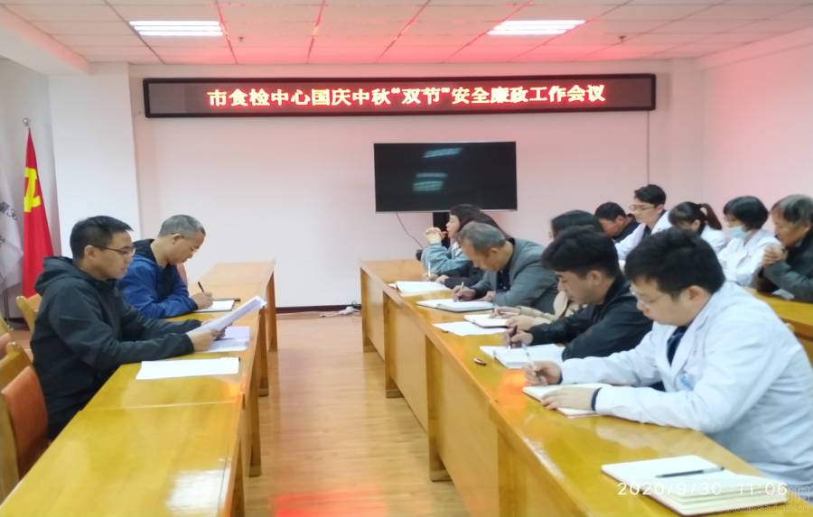 9月30日,市食检中心召开国庆中秋“双节”安全廉政工作会议,党支部书记、主任张志伟主持会议并讲话,全体干部职工参加会议。