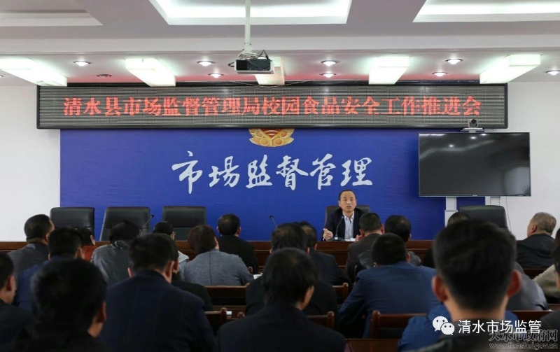 为全面贯彻落实甘肃省市场监督管理局、甘肃教育厅全省加强校园食品安全工作视频会议精神,10月10日,清水县市场监督管理局组织召开了校园食品安全工作推进会。各基层市场监管所及相关职能股室负责人及各学校食品安全工作分管领导共90余人参加会议。