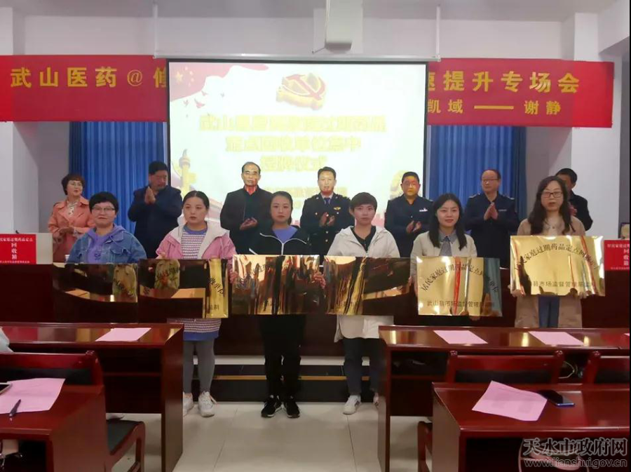 近日,武山县市场监管局对居民家庭过期药品回收定点单位进行集中授牌和培训指导,扎实有力推进居民家庭过期药品回收工作,确保药品安全监管不留漏洞,保障群众用药安全。