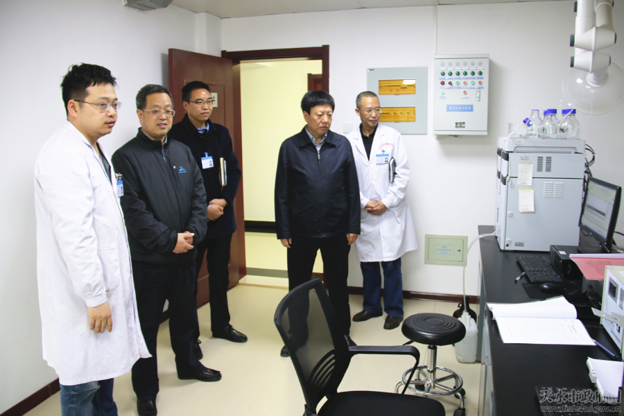 殷正德对天水市食品检验检测中心的工作和近年取得的成绩给予充分肯定。他指出,天水市食品检验检测中心经过近几年的发展,实验室条件得到改善,技术力量不断加强,检验能力持续提升,检验检测工作迈上了发展的快车道。他强调,要充分发挥检验检测机构的服务保障作用,坚持依法检验,严格质量管理,全面做好食品检验检测工作。要结合检验检测工作实际,抓重点、补短板、强弱项,进一步提高设备使用效率,加强技术队伍建设,开展科学技术研究,全力抓好检验检测工作任务落实,不断提高服务市场监管、服务经济社会发展的技术支撑能力,确保人民群众“舌尖上的安全”。