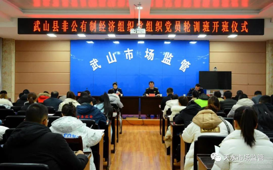 为认真学习宣传贯彻党的十九届五中全会精神,进一步加强全县非公有制经济党组织党员教育管理,不断提升非公有制经济党组织党建工作水平,12月2日,武山县非公经济组织党组织党员轮训班开班。县非公有制经济组织党委负责人、委员及全县非公有制经济党组织部分党员、部分党务干事,基层党建工作指导员共计80余人参加开班仪式。