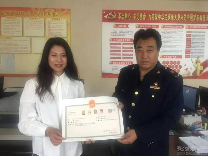 从事建材批发行业的吕女士是麦积区首位办理“秒批”营业执照发放的个体工商户。在桥南市场监管所的指导下,吕女士在5分钟内完成个人信息认证、资料填写并进行申报,在“掌上注册通”APP签字确认后,1分钟内便收到了确认短信,当场打印并领取了营业执照。