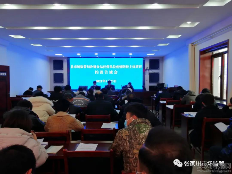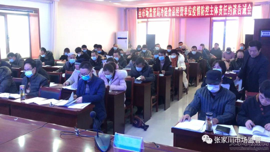 为进一步提升全县冷链食品经营户疫情防控责任意识,加强冷链食品疫情防控措施,压实市场主体责任,1月23日上午,张家川县市场监管局召开冷链食品经营单位疫情防控主体责任约谈告诫会。