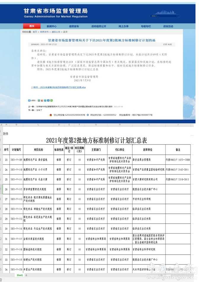 7月9日,甘肃省市场监督管理局下达2021年度第2批69项地方标准制修订计划,秦安县组织申报的《地理标志产品秦安蜜桃》地方标准成功获批“2021年度甘肃省地方标准制修订项目”。这是秦安继地方标准《地理标志产品秦安苹果》《地理标志产品秦安花椒》制修订项目完成之后,获批修订的第三个地方标准。