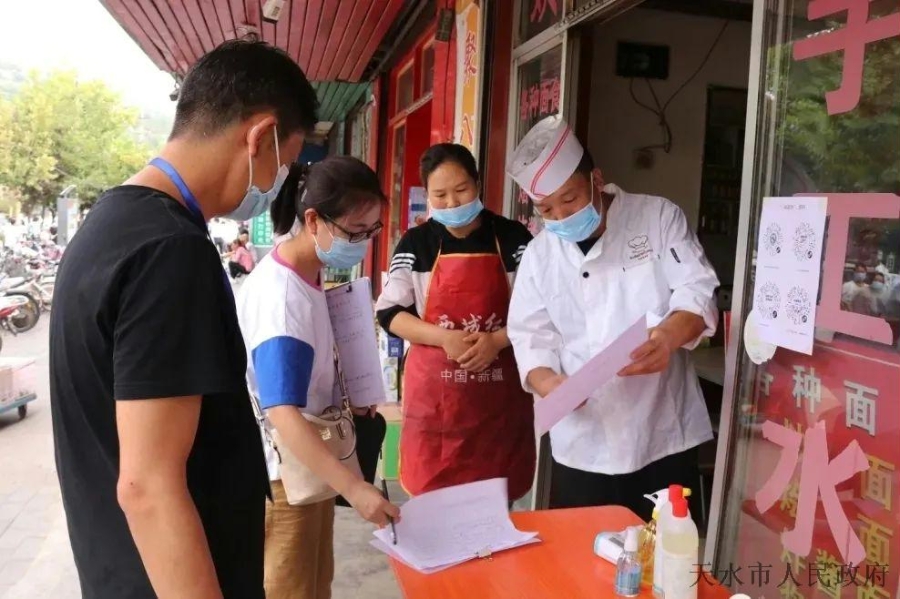 为进一步从严从紧从实抓好疫情防控工作,坚决阻断新冠肺炎疫情传播通道,保障广大市民健康安全。8月10日,秦安县市场监管领域专责组集中力量对全县餐馆、酒店和超市等经营场所佩戴口罩、扫码、测温、消毒、通风等防控措施落实情况进行全面检查。