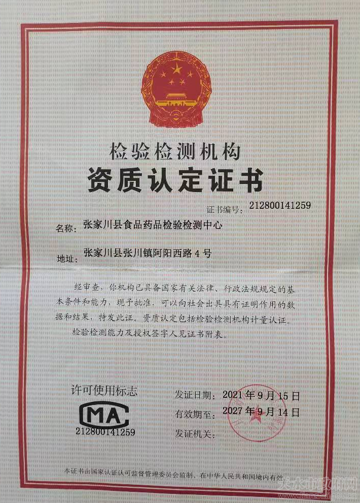 近日,张家川县食品药品检验检测中心取得省市场监管局颁发的《检验检测机构资质认定证书》(CMA证书),这标志着张家川县食药检中心具备向社会出具具有证明作用的检测报告,填补了该县食品检验检测能力的空白。
