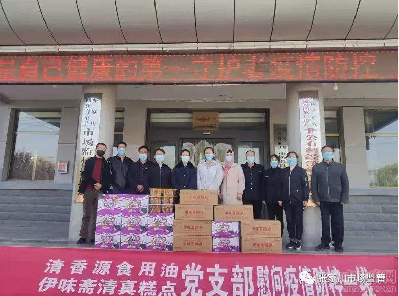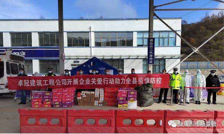 全县非公经济人士响应党的号召,积极行动起来。10月25日,张家川县伊真香清真淀粉制品有限公司党支部、伊佳源电子商务有限公司、张家川县韵达快运三家公司为疫情一线人员送去了方便面150箱、矿泉水200扎,折合人民币共计8600元,把党组织的温暖送到了一线。10月27日,甘肃卓冠建筑工程有限责任公司党支部深入8个防疫卡点慰问疫情防控一线人员,共送去防寒大衣100件、方便面400箱、火腿肠400箱、八宝粥180箱,折合人民币共计50000元,甘肃卓冠建筑工程有限责任公司经理马伟表示,将会继续团结一心、联防联控,尽一份社会责任。10月28日,张家川县伊味斋糕点加工厂党支部联合清香源食用油有限公司向市场监督管理局送去了价值1500余元的方便面及糕点等物资,慰问疫情面前逆行的市场监管人。