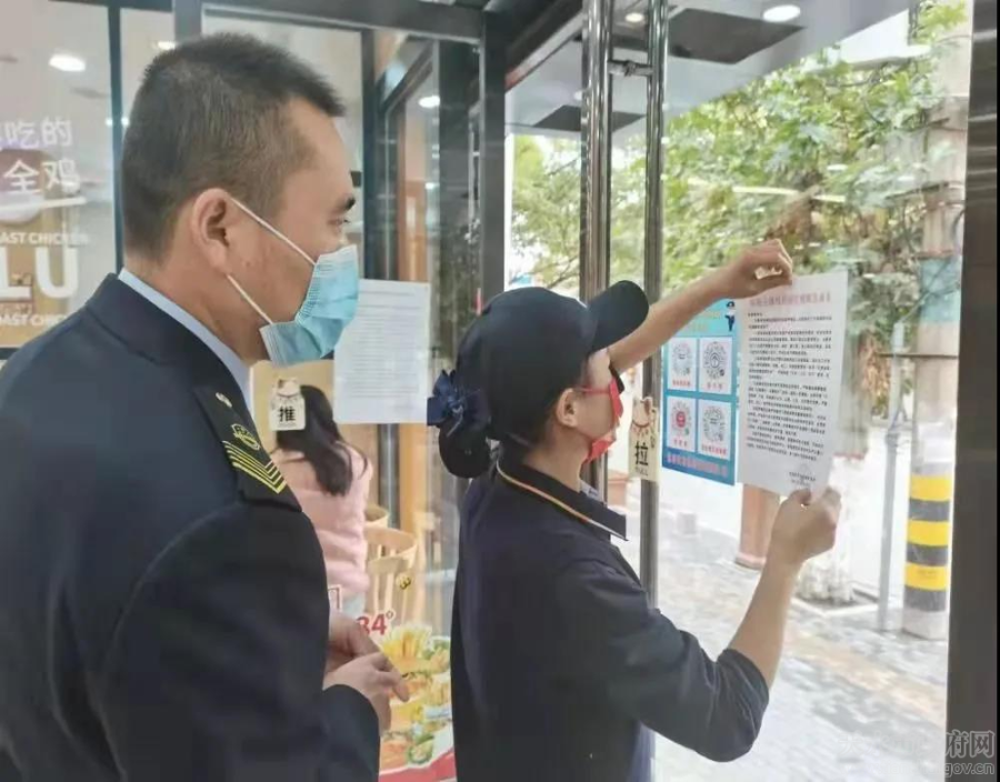 落实疫情防控措施。结合辖区经营户分布情况,将执法人员分为六组,逐户对市场主体进行摸排登记,督促经营主体落实疫情防控措施,做好营业场所消毒、通风、从业人员健康监测,对到店人员进行测温、验码、戴口罩等防疫措施。在摸排的同时通知经营主体从业人员到指定地点进行核酸检测,张贴《市场主体疫情防控提醒告诫书》和《健康自查二维码》提醒贴纸。截至目前,共摸排经营主体922户,张贴各类告诫书和“四码合一”贴纸1408张。