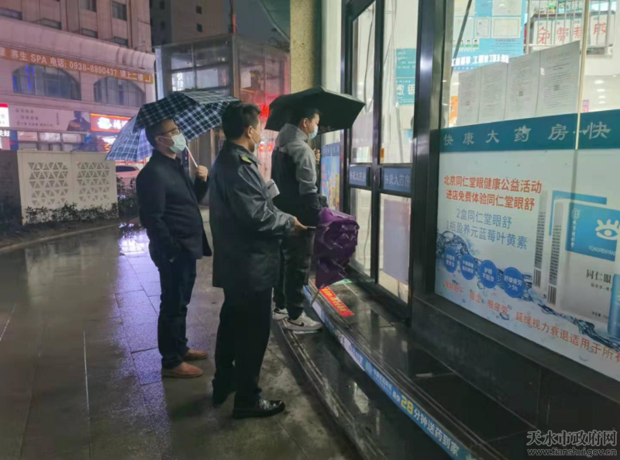 强化市场主体临时管制,严防严控疫情蔓延。自10月28日起,按照全市疫情防控工作安排部署,对辖区所有经营门店实行了临时管制,要求在防疫期间一律暂停营业(除生活物资必须供给点外)。执法人员不间断对辖区开展巡查,对于疫情防控意识淡薄、屡劝不改的市场主体,对负责人当场进行批评教育并坚决予以关停。截至目前,除麦积区金都超市、麦积区爱家乐超市、麦积区金都医药超市正常营业外,其余经营门店均暂停营业。安排执法人员全天候进驻三家超市,随时掌握市场供应和消费情况,及时提示商家保证货架货物充足。要求各经营场所负责人积极组织货源,在保质量、保价格的前提下保障市场供应。组织超市人员每日对市场公共区域进行定时消毒,督促市场主体开展进店顾客信息登记、体温测量、健康码查验等工作。要求药品经营商家全面落实测温扫码等疫情防控措施,停止“四类药品”销售,主动加强药品和医疗防护用品的购进,确保货源充足。