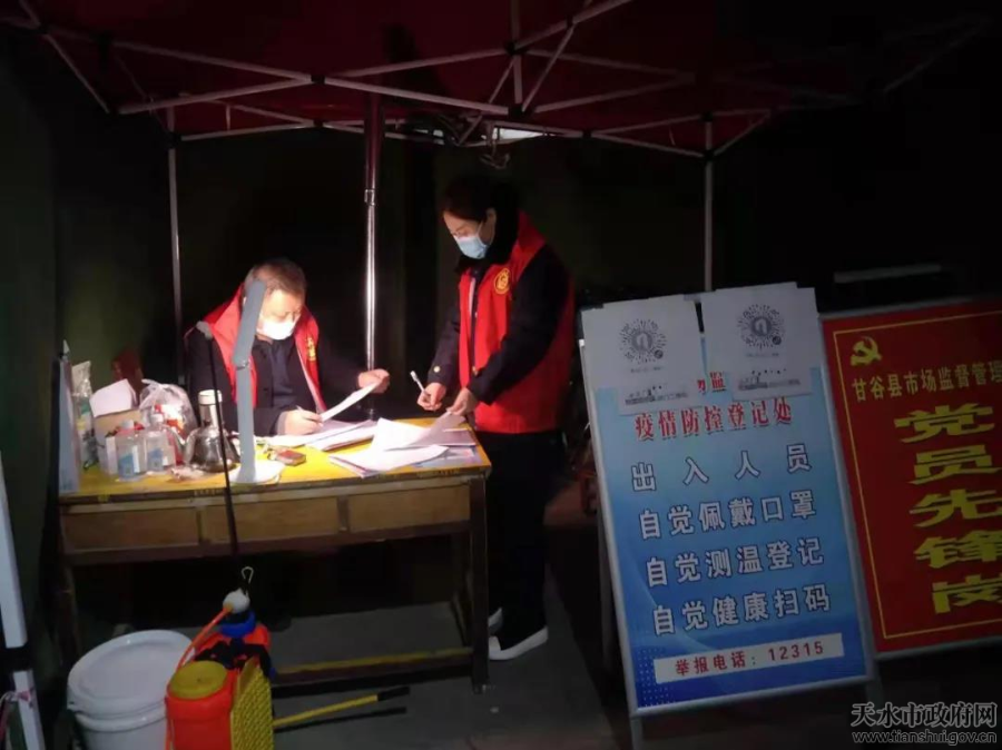 甘谷县市场监督管理局党员干部将始终以人民生命至上、健康安全为主,持续落实好县疫情防控办公室的部署安排,严格落实好小区把控值守,夯实基层堡垒,筑牢疫情防线!