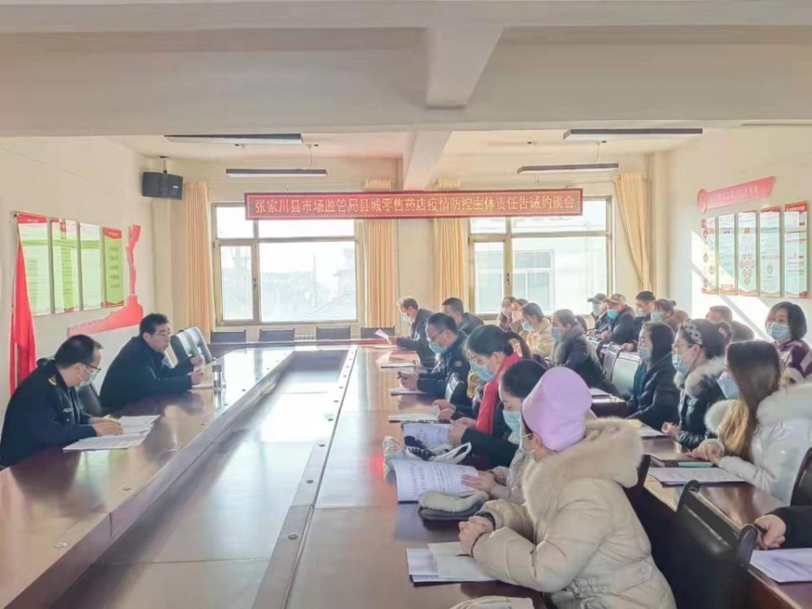 为进一步靠实“两节”期间药品流通领域疫情防控工作责任,充分发挥零售药店疫情防控“哨点”作用。近日,张家川县市场监督管理局召开县城零售药店疫情防控主体责任落实告诫约谈会。38家零售药店负责人参加了会议。