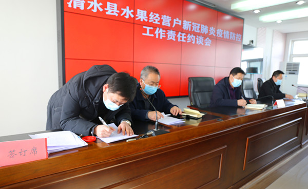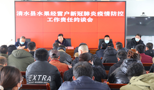 1月12日,清水县市场监督管理局组织城区109户水果经销单位负责人召开了“清水县水果经营户新冠肺炎疫情防控责任约谈会”。会上,城区9个执法监管组组长与局党组签订了《进口水果疫情防控监管承诺书》,109户水果经销单位与辖区监管组签订了《进口水果疫情防控经营承诺书》,2家水果批发经营单位负责人作了表态发言。