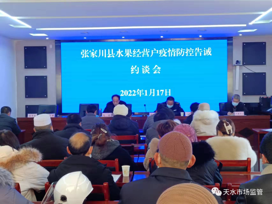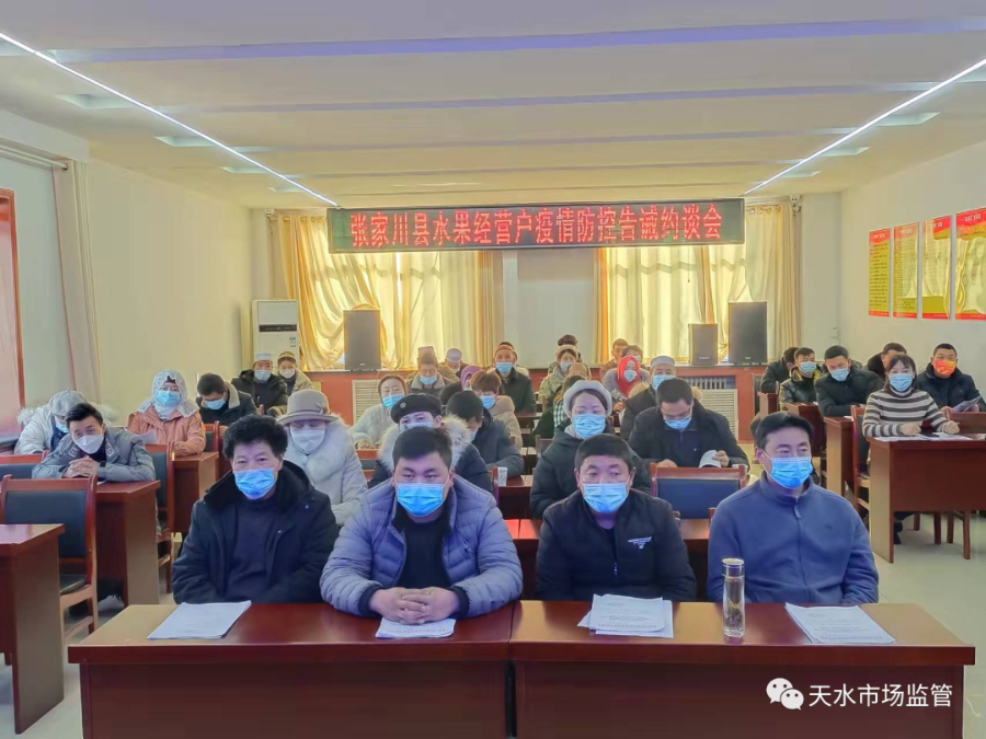 为贯彻落实省、市、县疫情防控工作会议精神,进一步管控进口水果,强化进口水果经营户疫情防控责任,夯实人防、物防责任体系,严格落实进口水果和冷链食品闭环管控,切实阻断疫情传播风险。1月17日下午,张家川县市场监管局召开了水果经营户疫情防控告诫约谈会。县城投公司、县市建公司、通达农贸市场负责人、县市场监管局相关股室负责人及辖区内销售进口水果的经营户60余人参加了会议。