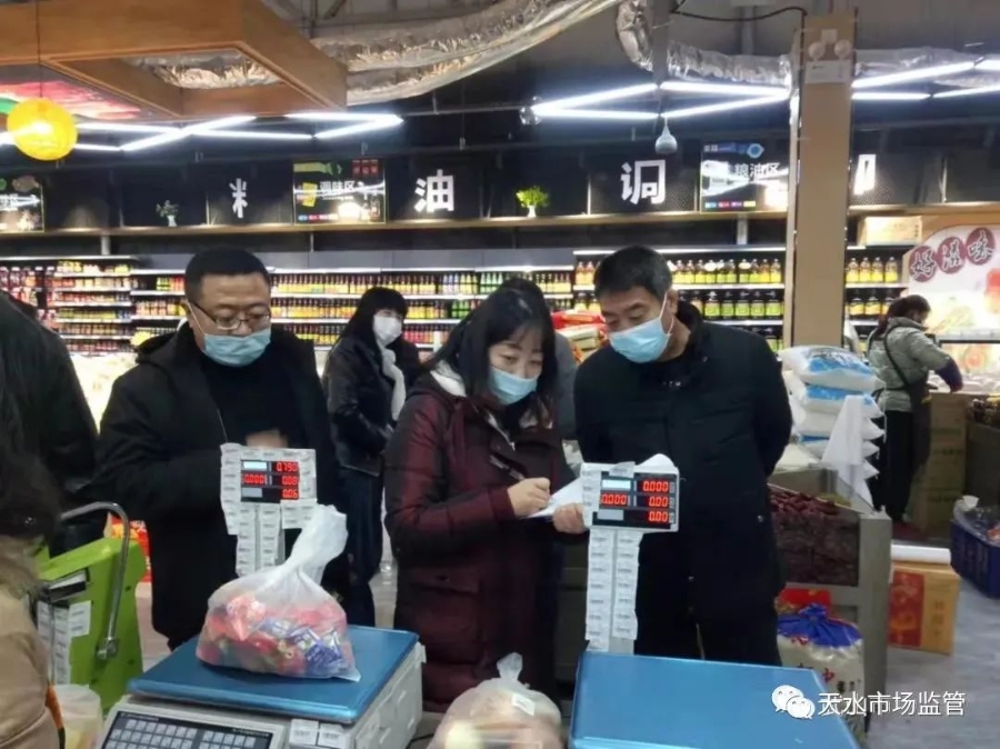 春节来临之际,为规范市场计量行为,确保计量器具量值准确,公平公正,打击计量欺诈行为、解决老百姓短斤少两的问题。武山县市场监管局对集贸市场及大型超市等涉及民生的领域,重点对粮油、水产品、肉、蔬菜、茶叶、糖果等经营者在用计量器具进行了监督检查。