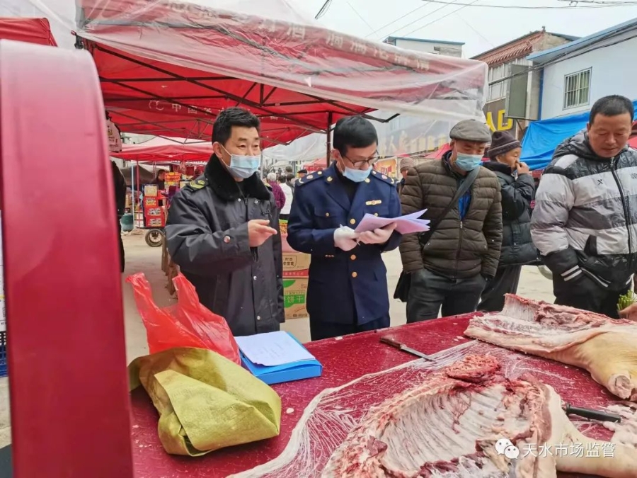 连日来,秦安县市场监管局联合县畜牧中心对全县生猪产品质量安全进行了为期10天的专项监督检查,进一步规范辖区生鲜猪肉市场秩序、强化经营户自律意识,确保广大群众吃上放心肉。